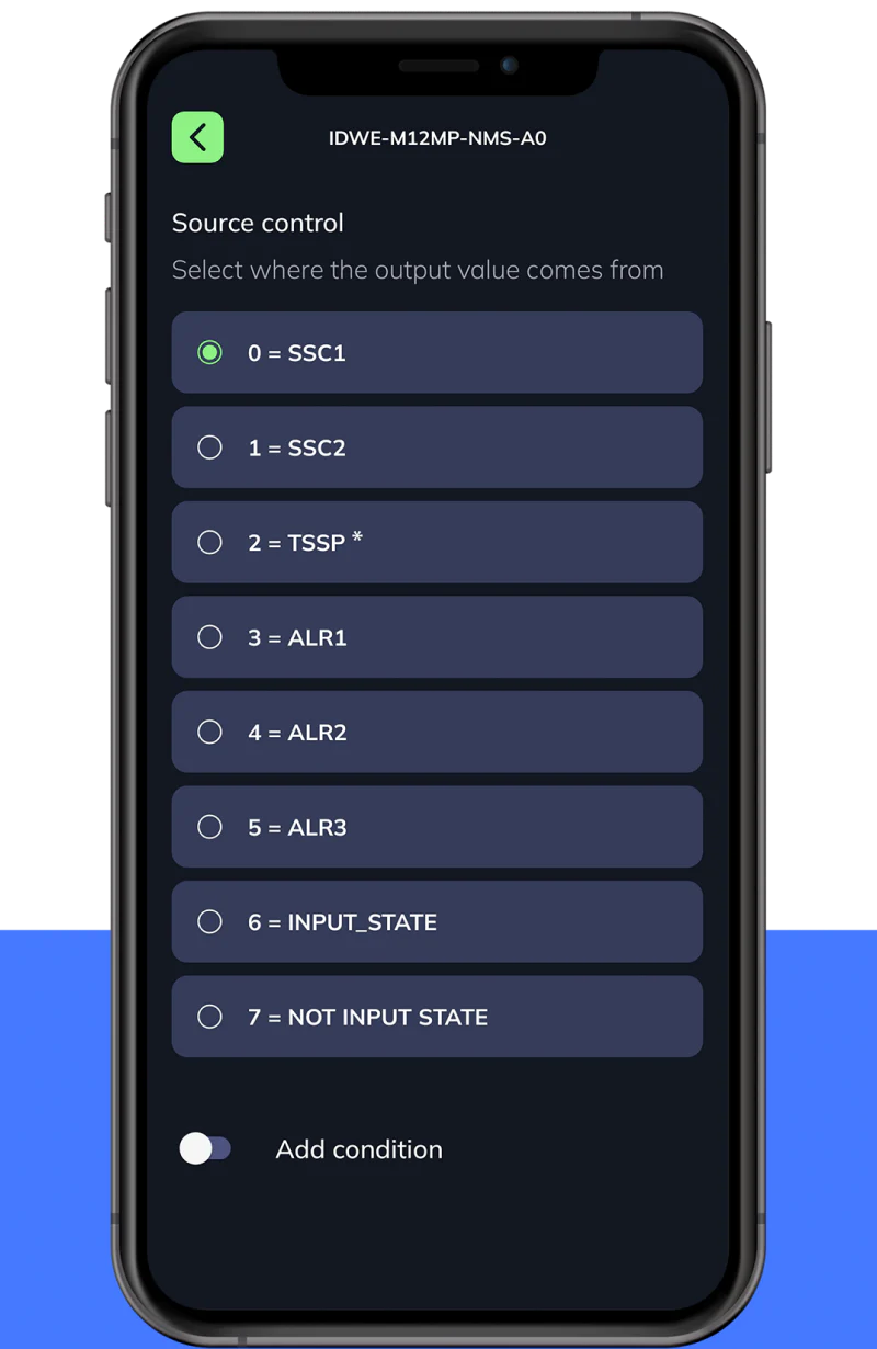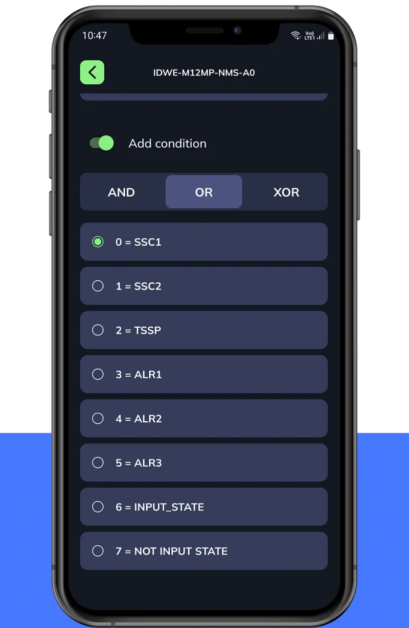 可选择将内部信号、警报和/或来自 OSS2 输入端的外部信号结合起来。 使用或、与或与或 函数定义条件输出逻辑。