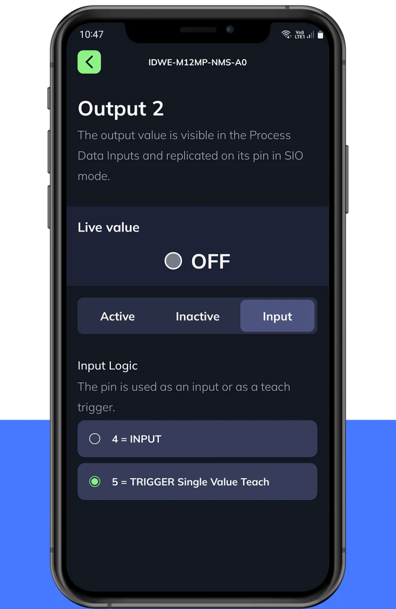 将输出 2 配置为输入,以触发 SSC1(开关点 1)上的单值示教。
